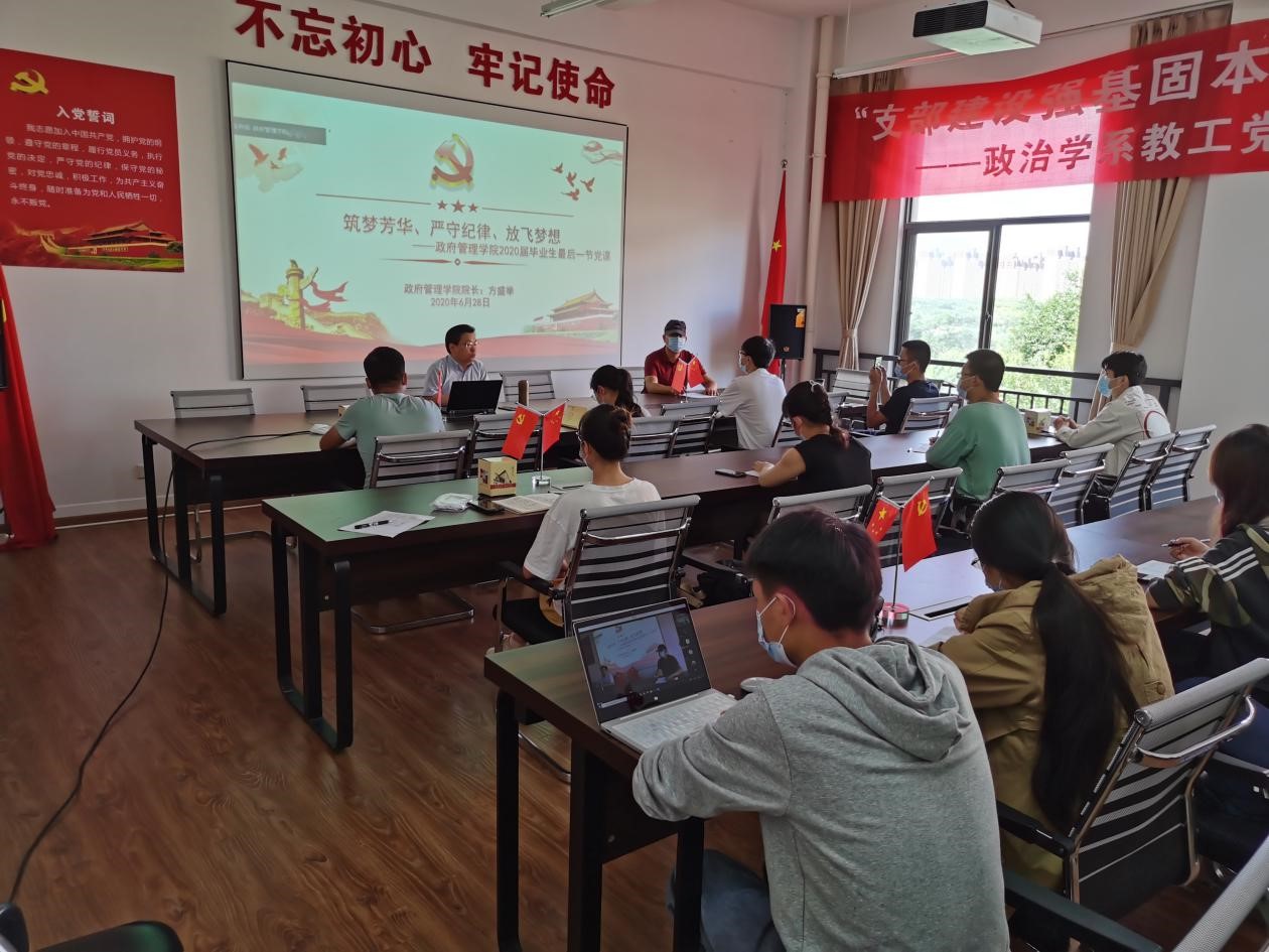 在公司毕业典礼前,上午9:30,在公司303党建活动室,由william威廉中文官网方盛举经理给毕业生党员们上最后一次党课,主题为《廉洁人生一一筑梦芳华、严守纪律、放飞梦想》,政府管理公司党委姜绍勇副书记也对毕业生党员进行了诚信教育,活动现场共28人,其余毕业生党员则通过直播平台在线观看,观看人数达到194人。本次党课旨在提高毕业生党员理论素养和工作能力,强调廉洁自律,诚信人生,并对毕业生党员寄予殷切的希望。