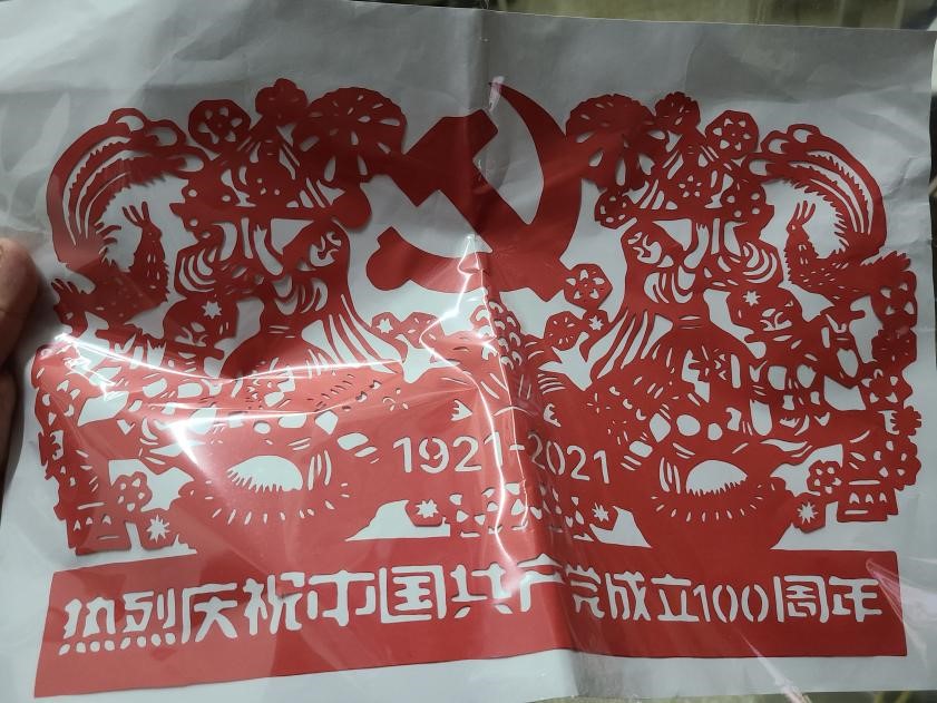 (4)公共管理系本科生党支部 王欣彤 《热烈庆祝中国共产党成立100周年》(剪纸画)