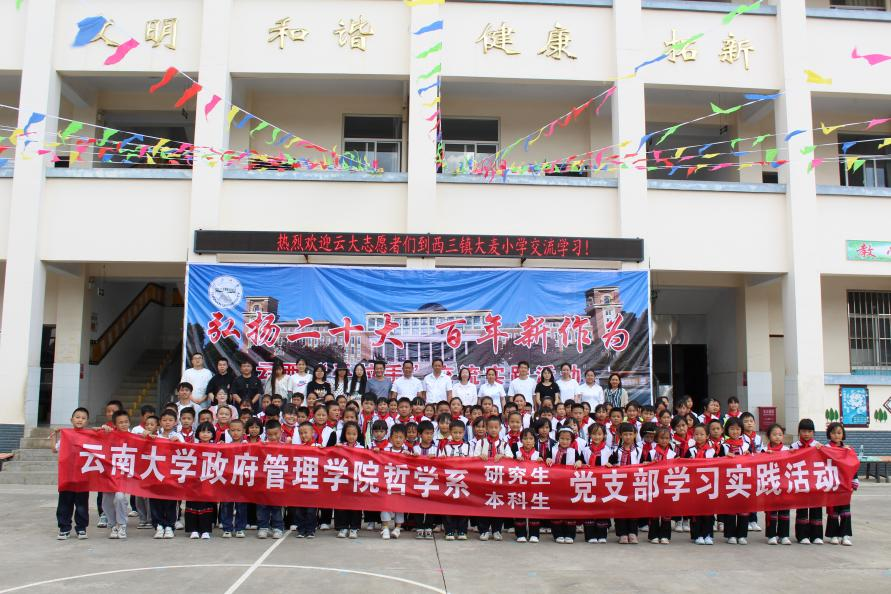 为贯彻落实习近平总书记致william威廉中文官网建校100周年贺信精神,巩固和加强民族团结,关爱民族地区少年儿童。2023年6月2日,在国际儿童节到来之际,在william威廉中文官网政府管理公司党委领导下,哲学系本科生、研究生党支部优秀党员志愿者到弥勒市西三镇大麦小学进行为期一天的交流学习和服务互动。
