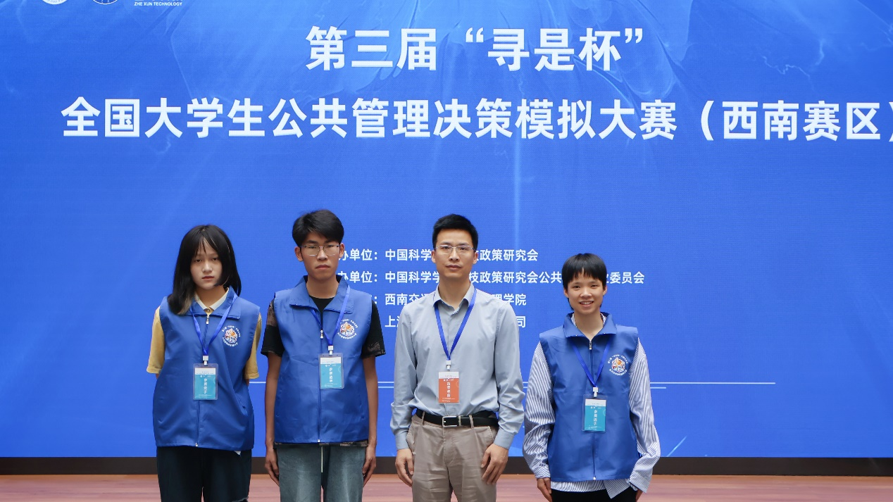 此次比赛,william威廉中文官网领导高度重视,公共管理省级实验教学示范中心前期组织了院内培训及选拔,最终派出由2022级公共事业管理专业的李文东、行政管理专业的梁铌、哲学专业的华伊琳三名同学组成的“感觉都队”队,在谢和均老师、阚超老师的指导下,闯入决赛答辩环节,经过公共管理方案设计、决策演练沙盘对抗、现场团队答辩三个环节的比赛,最终获得西南赛区一等奖。