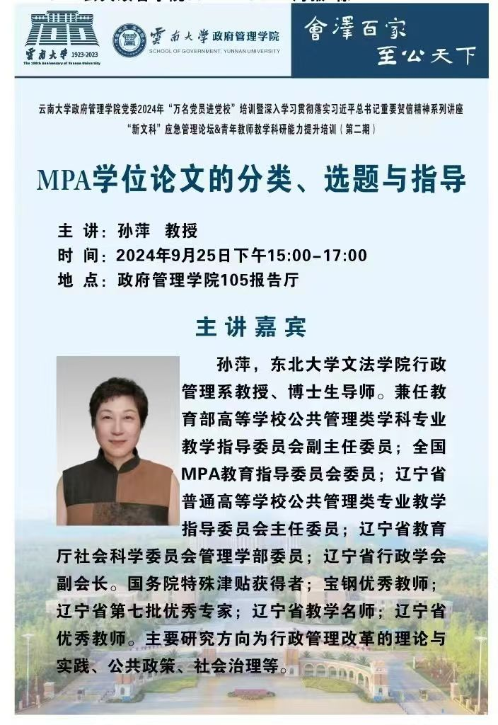孙萍教授讲座为2024年云大MPA导师培训系列活动启幕
